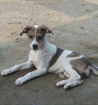 | Es de color blanco con manchas marrones, tiene un ojo negro y el otro celeste, sufre de la cadera.. |